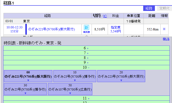 東京~京都・大阪[東海道昼] (13/11/01改定)